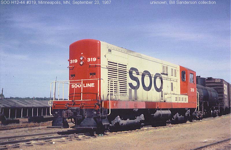 Notes : Built by FM as MStP&SSM #319, (12/1954), then to SOO #319. Retired (1972). Sold to EMD as trade-in on new SD40-2's. |