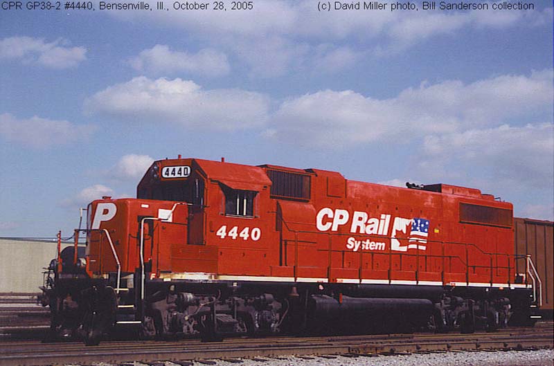 Other Photos (chronological) : 1. CP 4440 at Bensenville, IL., painted in the CP Rail Dual Flags paint scheme. Photo by David Miller, 2005. From the Bill Sanderson collection.