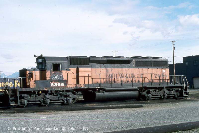 Built by : EMD Built in :1974 Serial Number : 73687-24 Paint Scheme : Ex-Milwaukee Road This Photo : Michael P. Guss, 1989. From the Bill Sanderson collection.