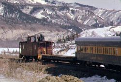 Though, like today's Amtrak, the Santa Fe, ran connecting buses to its main line trains, it also ran connecting trains. Here's #27 at Colorado Springs on a crystal clear late winter afternoon in the mid-sixties. This coach-only train ran from La Junta, where it connected with the eastbound Chief, to Denver. In those days Colorado Springs not only had rail service, it had two depots, one to serve southbound trains and end-runs on the Rock Island, Rio Grande, Burlington and Santa Fe. When I took this shot the Rock Island had just ended its service and the rest would soon follow, leaving the route to coal drags and a lot on speculation on new services. Perhaps a viewer can explain the flags on the engine. |