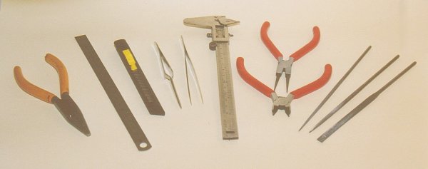 For assembly, only basic hand tools are required (tweezers, files, cutter, ...). A very thin saw is needed. For the painting, a few brushes can do. I use an airbrush and a compressor. A picture of the tools I used on this project. |