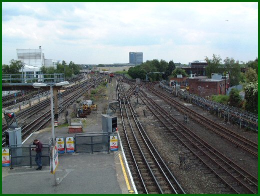 This picture was taken from the east sidings, looking back towards Acton Town station - the white painted footbridge visible is from where the previous photograph was taken. The building to the right is Bollo House, the west end 'home' of the Piccadilly Line. This occupies land on which the District's old South Acton shuttle service used to run.