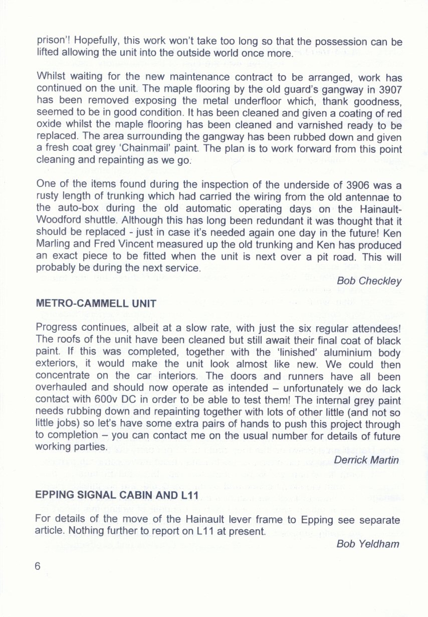 Unfortunately in 1996 ORPS did not recieve the opportunity to begin operating Epping-Ongar trains when Pilot developments were nominated as the prefered bidder. Instead the train was transfered to Ruislip depot. It has continued to operate in private ownership with tours of the Metropolitan, Jubilee and Northern lines being carried out. The train has also provided the Chesham branch service during Steam on the Met events.