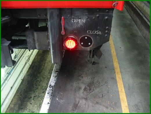 The full view of the cab end with the tail lights illuminated.