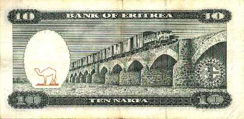 The 10 Nakfa note shows the same bridge.