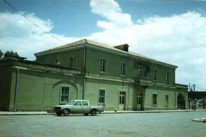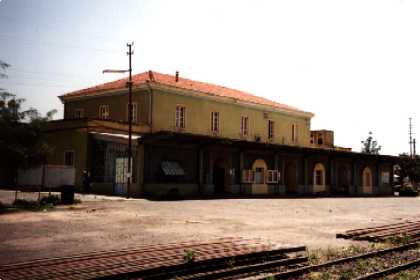 Notice how the style of the railway buildings contrasts with Art Deco buildings from the city of Asmara.