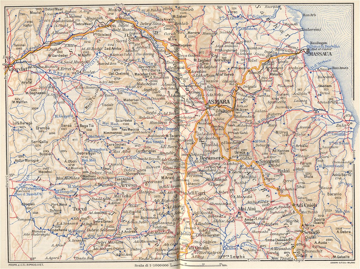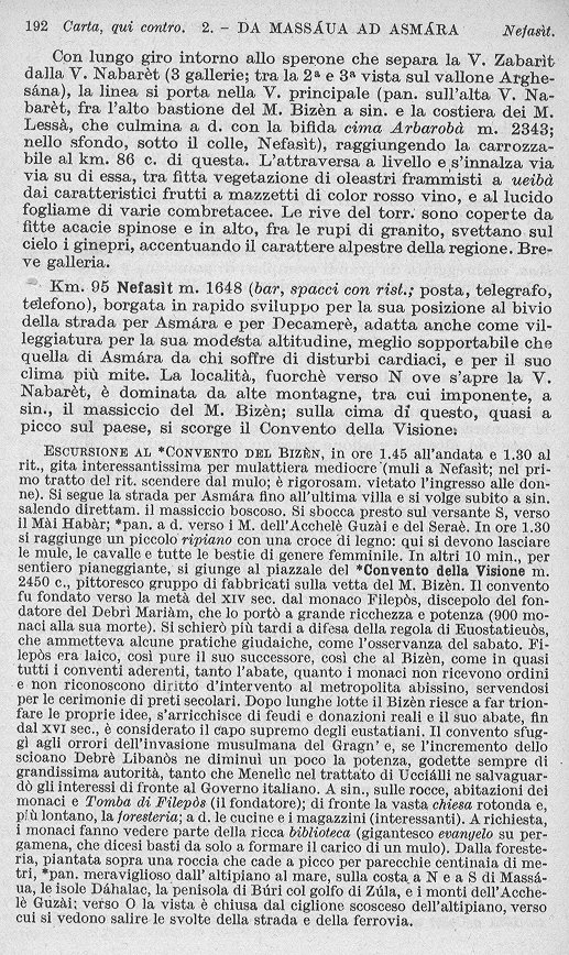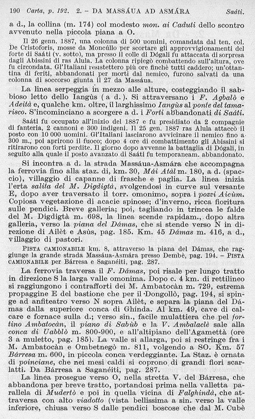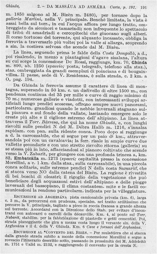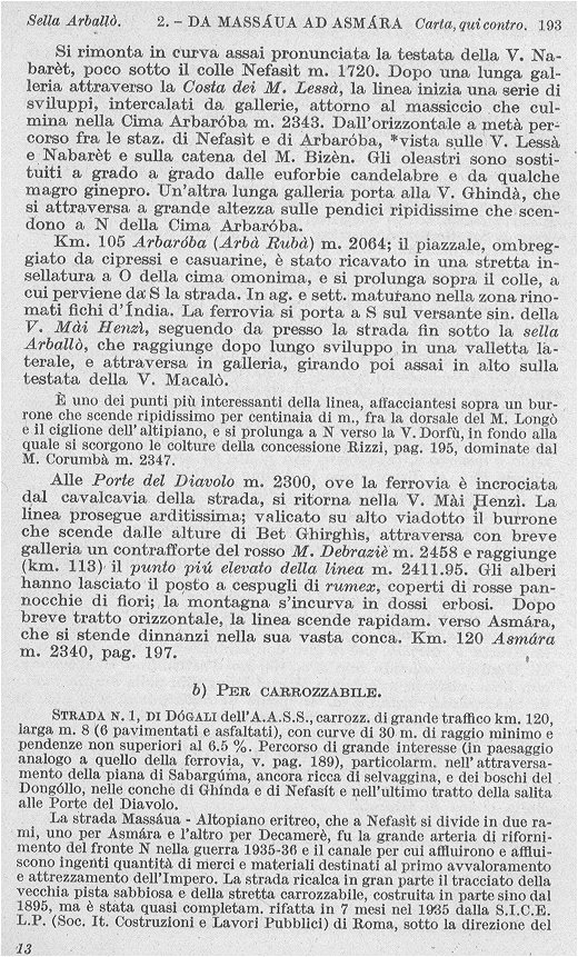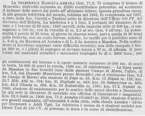 Above pages courtesy of Renato Gaudio. While struggling to translate this, I forwarded the electronic copy to Dave Engstrom. Dave was an Italian Linguist at Kagnew Station at time later than mine. He translated it into English and provided me with a copy. One section covers Massawa to Asmara. The other covers Asmara to Keren and Agordat with a little piece about the train to Biscia. I will make links hot on it as time goes by. This is the reverse of my journey almost 25 years later. I'm afraid that I was not near as elequent. Dave also provided a translation of the Ropeway page.