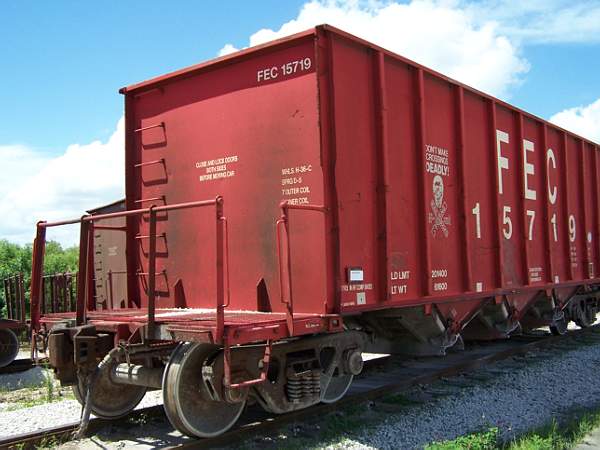 May 23, 2006 The following photographs depict the 43' Ortner 3-Bay Hopper Car, a somewhat "signature" car for the Florida East Coast (FEC) Railway taken by Harlan Hanna [FECNRHS Chapter Recording Secretary and Newsletter Editor (Interim)] |