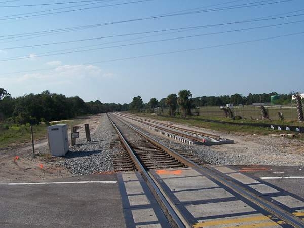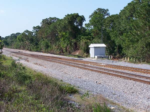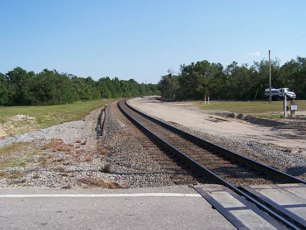 Looking North about 150 Ft North on Fay Blvd. Beginning of passing siding from Port St. John to Camp Road in Sharpes |