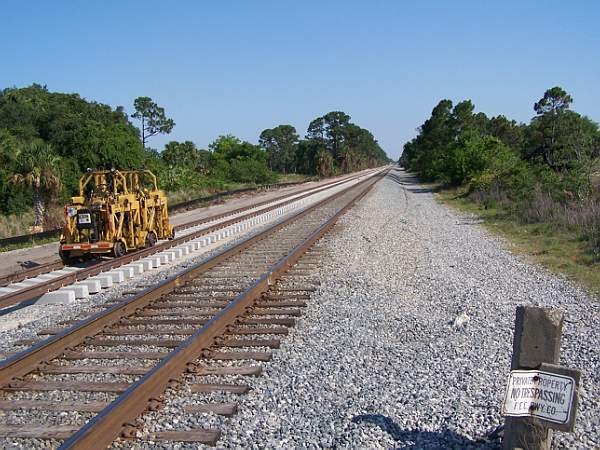 May 23, 2006 The following photographs depict the new construction activity on the Florida East Coast (FEC) Railway taken by Harlan Hanna (FECNRHS Chapter Recording Secretary and Newsletter Editor (Interim)). In the May 2006 FECNRHS Chapter Newsletter (The East Coast Champion), Harlan made note of the work going on in the vicinity of the Space Coast Regional Airport, formerly known as the Titusville - Cocoa (TICO) Airport. After the May 2006 FECNRHS Chapter Meeting, Don Pierson informed Harlan that what he had observed was construction of a track extending from Indian River City (SR 50) Titusville, FL to Fay Blvd in Port St. John, FL |
