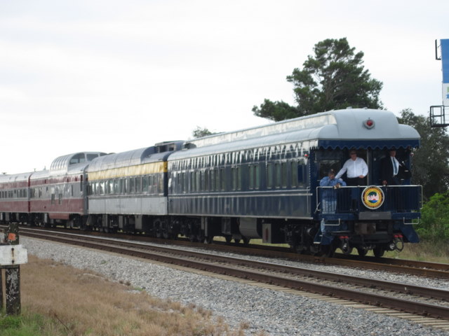 November 3, 2009 AAPRCO Train visits Cocoa. Members had a tour of Kennedy Space Center so left their cars on a siding north of Cocoa |