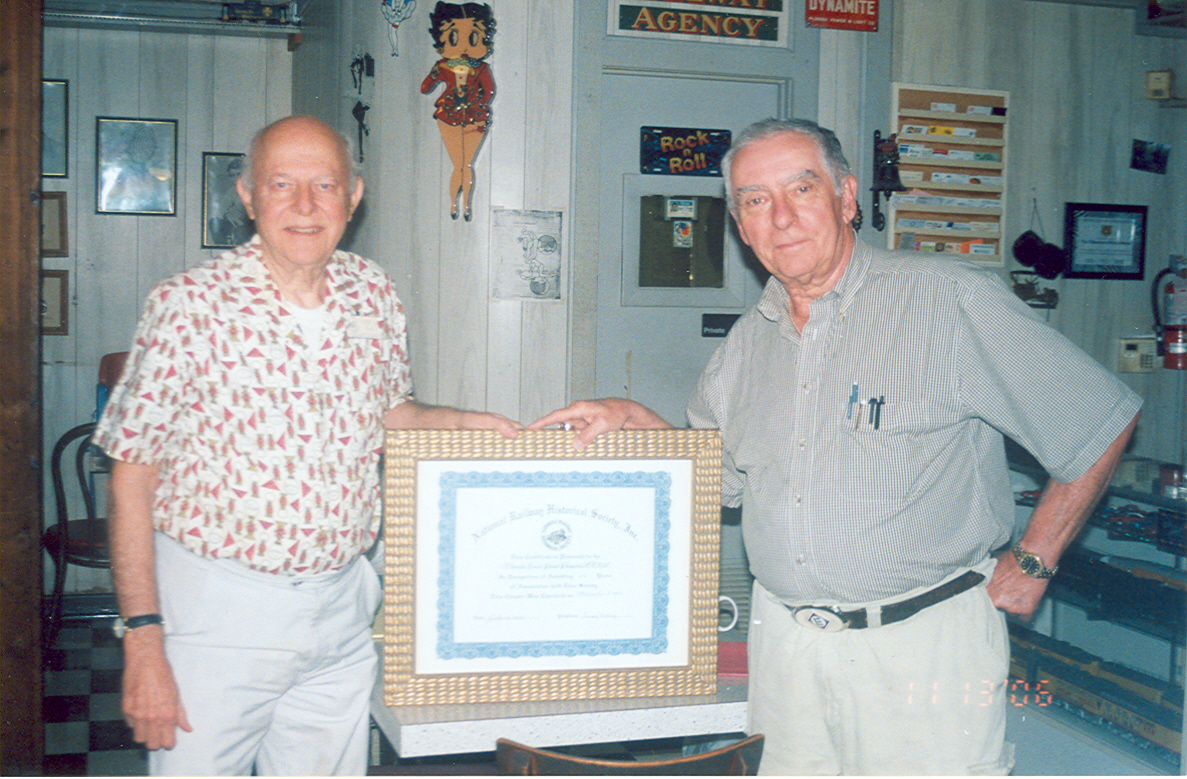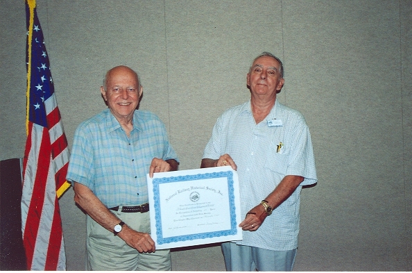 Member) and Mr. George Diller (Charter Member) display the NRHS 25th Anniversary