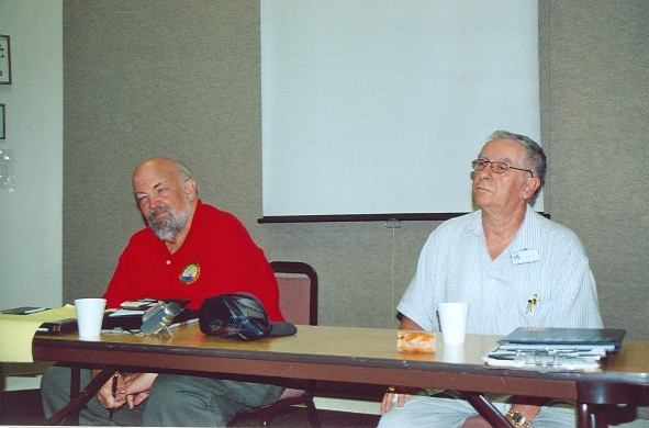 (L. to R.) Mr. Harlan Hannah [FECNRHS Chapter Recording Secretary and Newsletter Editor (Interim)] and Mr. Walter (Walt) Smith (FECNRHS Chapter President) conducting the FECNRHS Chapter monthly meeting |