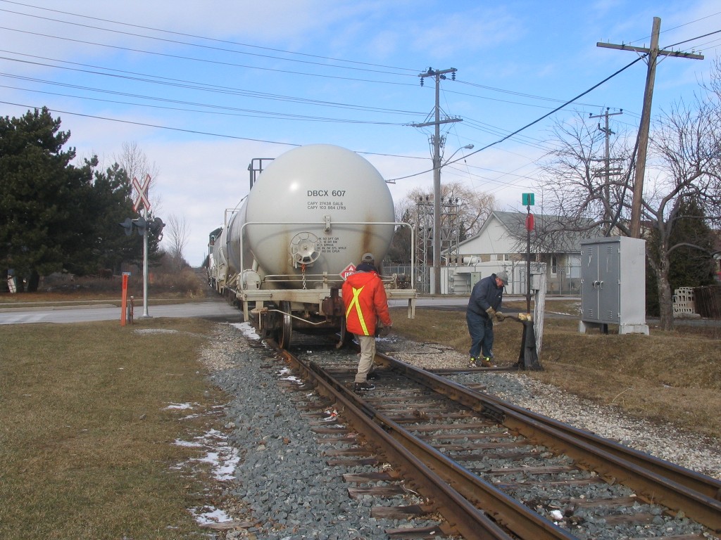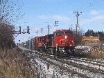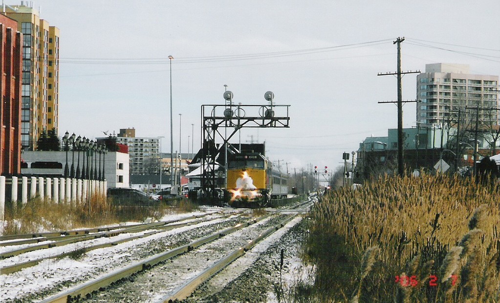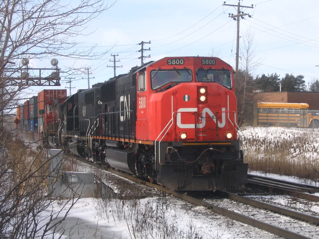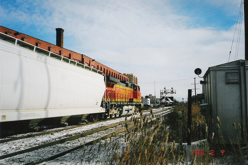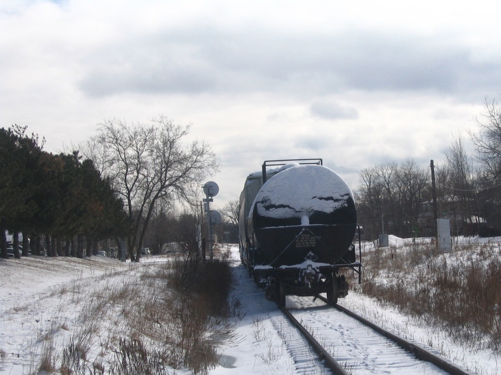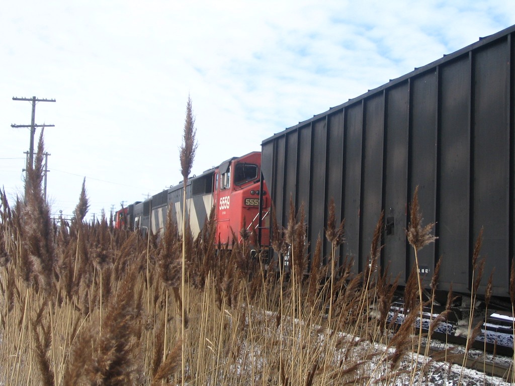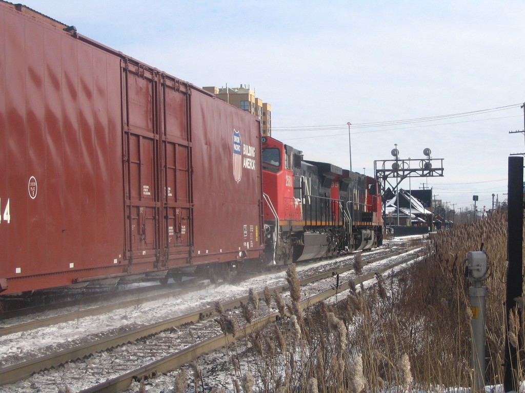 I went to Brampton today and caught up with Mike in hopes of catching OBRY southbound. I got there just after 84 passed then litterally 2 minutes after that an eastbound CN train with BNSF 4908 solo leading a lengthy train (as most tend to be :p). After that about 30 mins later another eastbound once again on the north track with CN Dash 9-44CW's 2595 and 2590 lead another lengthy train. After that VIA 85 came in for a stop at the Brampton station, at the same time 393 came rushing eastbound with SD75I 5800 with IC 6130 and CN 2633. I then caught one last westbound freight with 5791 and 5559 leading. We went into the train shop where we could see OBRY and CN from. We ended up just catching OBRY crossing the diamond at around 1230. We chased her south catching up with it as it passed under the 401 then once more at Alpha Mills Rd. We then headed home.