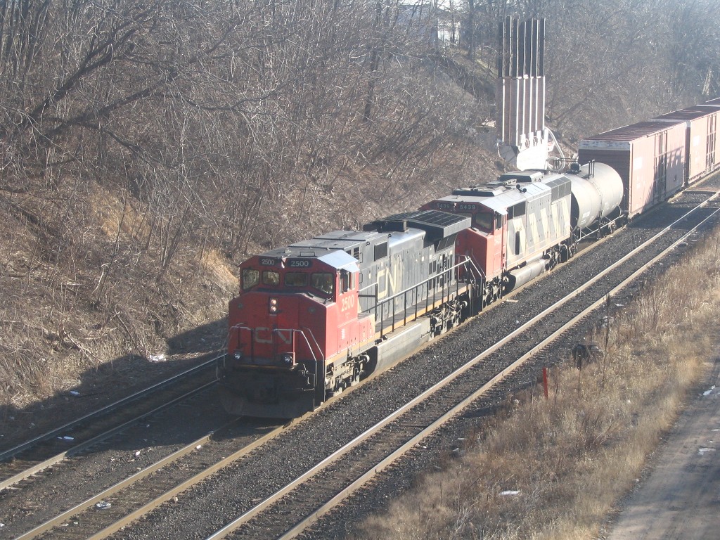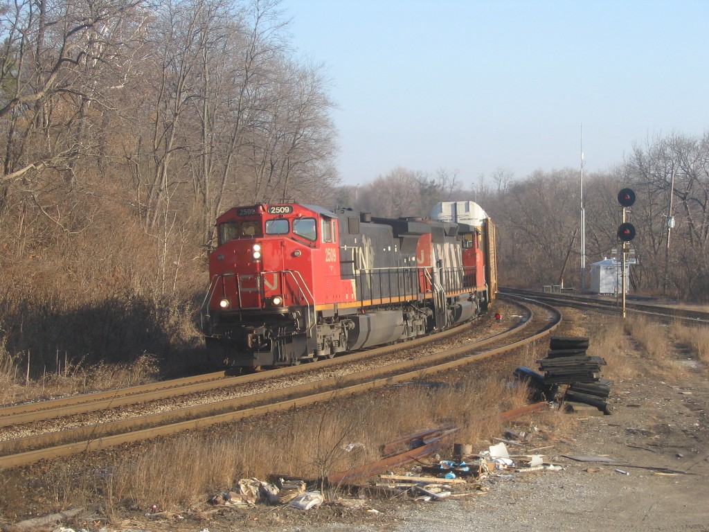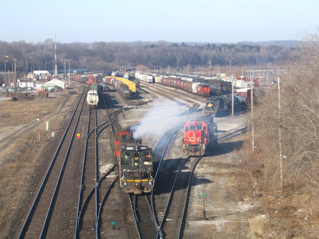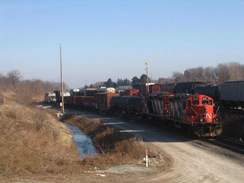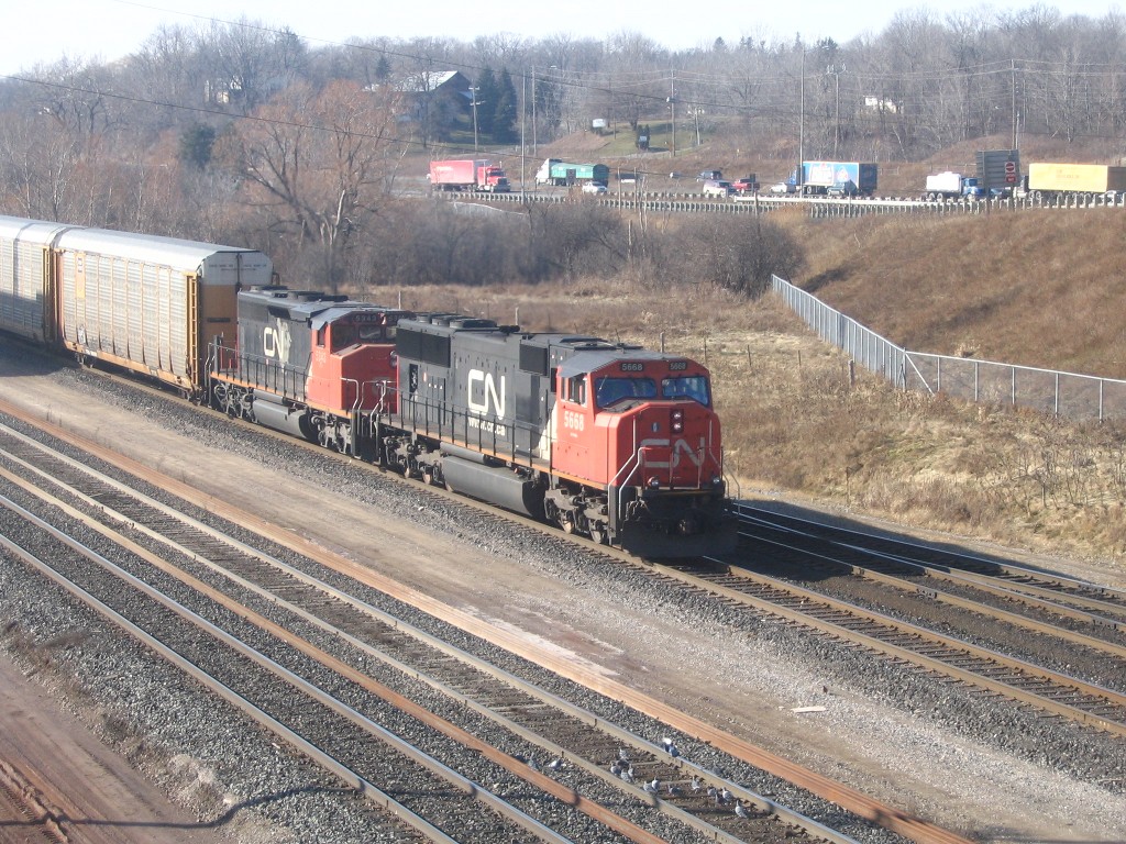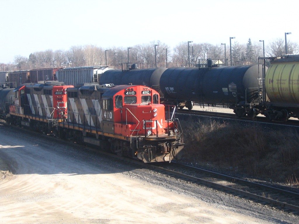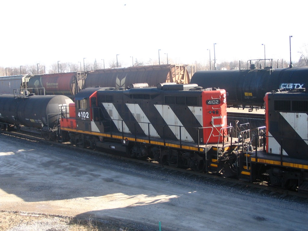 I got to go to Hamilton where I met Rob. We ended up seeing a number of trains at Bayview Jct and we caught RailLink switching in the Hamilton yard and then we caught NS 328 with NS 9074 and UP 3999 sliding through the yard. 15 mins later we caught CN 422 slowing to a stop to switch the yard. I ended up catching this train at Bayview Jct and Aldershot. In Aldershot I also caught CN GP9u's 4110 and 4102 switching and an eastbound autorack train lead by 5668 and 5343. I then went to Guelph where I caught GEXR 580 and OSR at the interchange. I tried going for the hat trick with GEXR 432, but it was no where in sight, I headed home.
