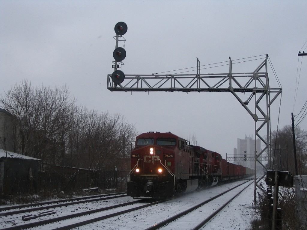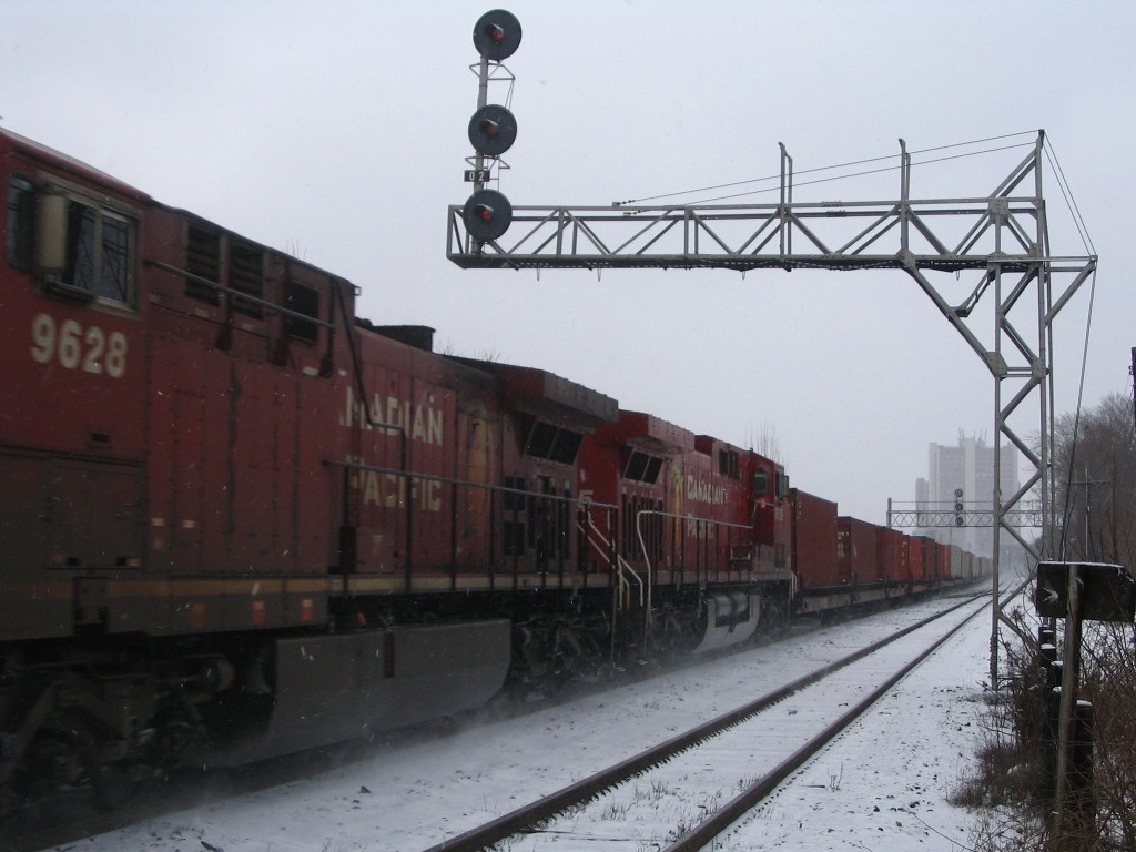 We spent the night in downtown Toronto, by morning I was up at 0830 and convinced my mom and great aunt to go out to West Toronto (where the CP North Toronto sub crosses the CN Weston sub and the CP Galt and CP Mactier subs parallel the CN Weston sub north (Mactier Sub) and south (Galt Sub) and Lambton yard to the west). I met a fellow railfanning friend Mike. I was only there for about 15 minutes but in that time I saw these two CP trains T22 then 5 minutes later 159 showed up. I then left with a VIA about to cross the diamond, but choose not to shot it.
