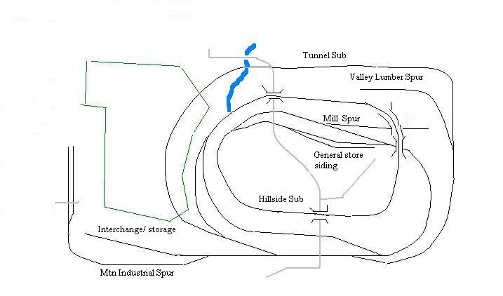 I (unofficially) finished all the "turfing" on the layout. The only thing to do before I get a train running on it is to ballast the rest of the track. I will then clear the track of the glue that has been crusted to the tracks. The stuff on my to do list is to finish off the rd on the Mtn Industrial spur, put wood chips/ sawdust over at Valley Lumber, put up tunnel portals on the openings of the tunnel, purchase some buildings and some scenery and try to figure what the heck I want to do with the centre village! So there is still quite a bit to do on my layout.