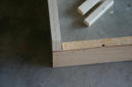 | I laid out lines on the sides to show where the ends overlapped, every 12" for the vertical small glue blocks and 1" beyond the 12" mark for the 10" glue block. I applied glue to the 5 small glue blocks and stuck them to the side, holding them with clamps. I flipped the side over and tacked them through the ply with 1" brads in my nail gun (eat your heart out Norm!). I then flipped it back over and added the long glue blocks. Because I only had 8 gripper clamps, I did this in 3 sections. Figure 1 shows one complete side, and the second side ready to have the second set of glue blocks nailed. | |