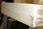 In the example I am showing, the top is out of square with the top. I am not worried about the relation with the sides, the track will be square with the end so it will line up correctly with the next module at a setup. Here is a close-up of a carpenters square held tight on the top of the module and checked against the end. From this is view you can see that the end is only off about 1/8 of an inch. Not much you might say. Now look what happens when the square is held against the end and brough down onto the top. That little bit of error on the end translates into 3/8 to 1/2 inch of error when looked at in a different way. This is a major problem. |