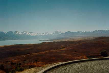 Southern Alps - Near Te Teko in the South Island Looking toward Mt Cook. The lakes around this region are a milky blue colour from the Glaciers that feed them.