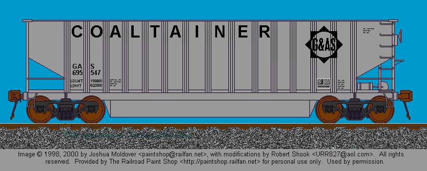 The G&AS Coaltainer© is G&AS's version of the Aluminum Johnstown Coalporter Gondola seen commonly throughout on the USA on unit coal trains. G&AS's own line of thease beasts, known as Coaltainers©, boast both a large capacity and a light weight, meanign more coal can be hauled on every train. G&AS has purchased 8,000 of these super modified gondolas, numbered from 690000-697999. These Coalporters were purchased in 1998 to increase capacity and replace some of the aging "fishbelly" hoppers commonly seen throughout the US in the mid 90's. And now, you too, can own some of G&AS's own Coaltainers©, with this limited run by Deluxe Innovations/LBF in N scale. Please see below for prices. For ordering information, please e-mail me.