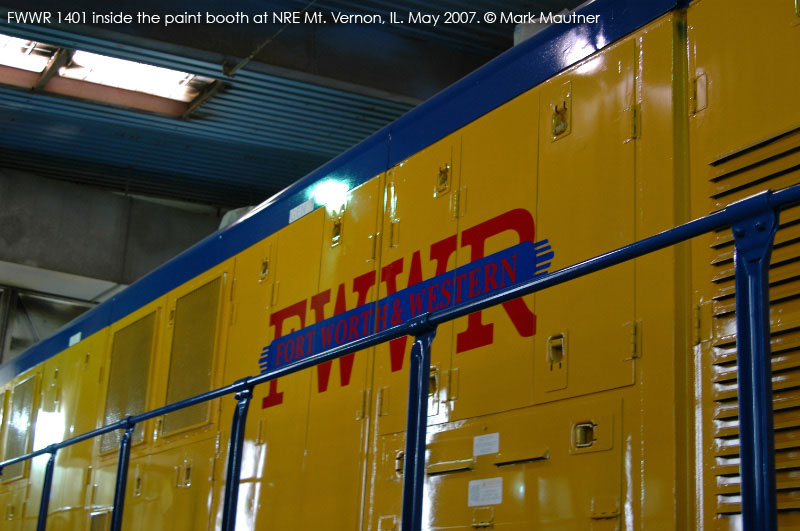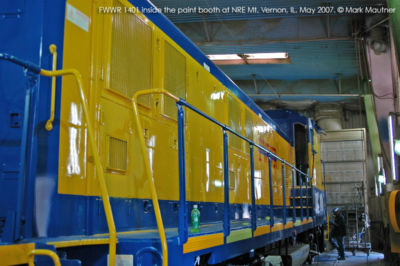 FWWR 1401 inside the close quarters of the NRE Mt. Vernon paint booth. Photo by Mark Mautner. Click to enlarge. |
