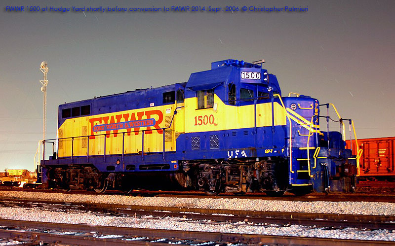 Although they were delivered as FWWR 1400 and 1401, the units were quickly renumbered FWWR 2013 and 2014 respectively, prior to being placed in service. |
