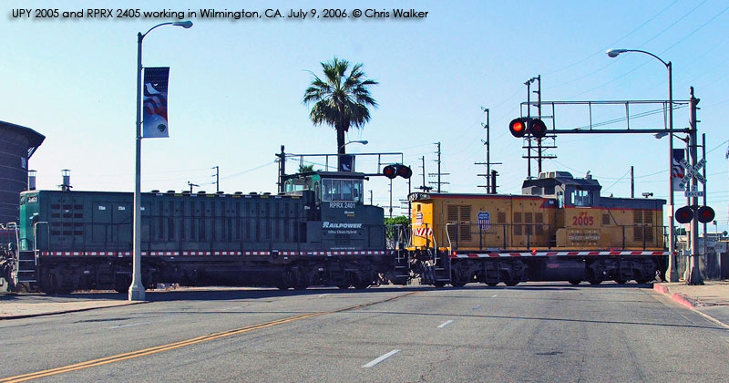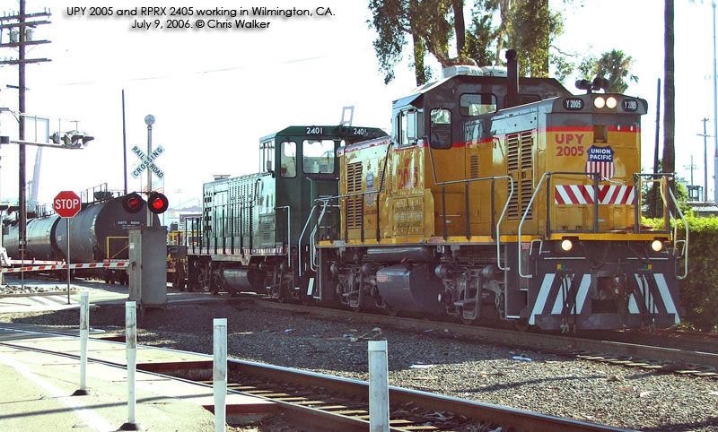 Chris Walker sends us these photos of UPY 2005 teamed up with Railpower GG20B RPRX 2401 in Wilmington on July 9, 2006. Click to enlarge. |