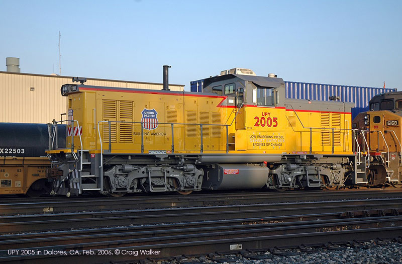 Prototype unit was built by NRE in Mt. Vernon, IL. Initially called a Truck Engine Switcher, later dubbed a genset switcher. From UP press relase dated Sept. 30, 2004. (http://www.uprr.com/newsinfo/railroad/2004/0930_pioneer.shtml). |