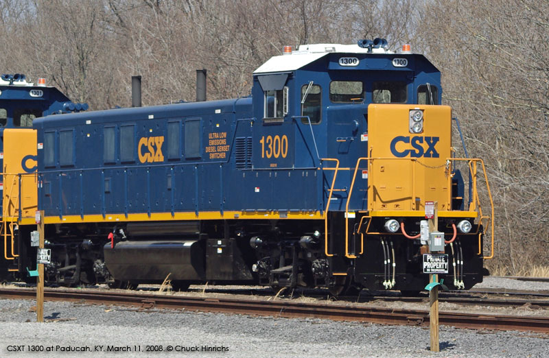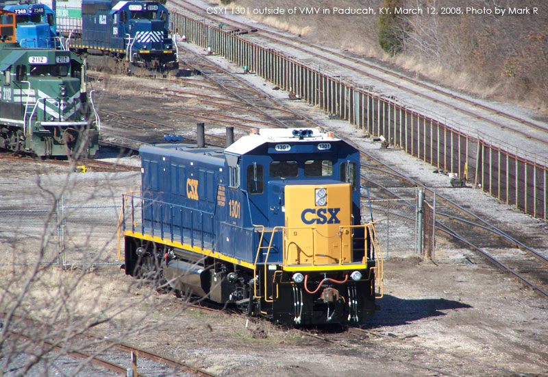 A. After being held in plant for several months, CSXT 1300-1301 were delivered and moved across the Paducah & Louisville by to CSX on March 12, 2008. Michigan units are assigned to the Cleveland service unit. From various sightings and reports.