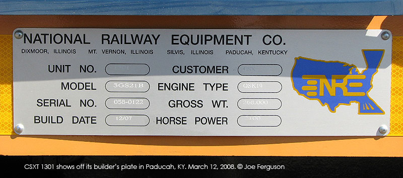 A. 1308 build location and plate information confirmed by Joe Ferguson. It's confirmed that the serial number is correct even though it is out of sequence. Unit departed Paducah in early March 2009 headed for Chicago. In Barr Yard (Chicago) in mid-March.