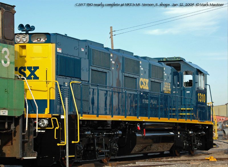 C. 1310 build location from photo evidence by Mark Mautner. Builder's plate info from a plate check provided by Sean Graham White. Unit departed Mt. Vernon in early March 2009 headed for Chicago, and has been spotted working there several times since.