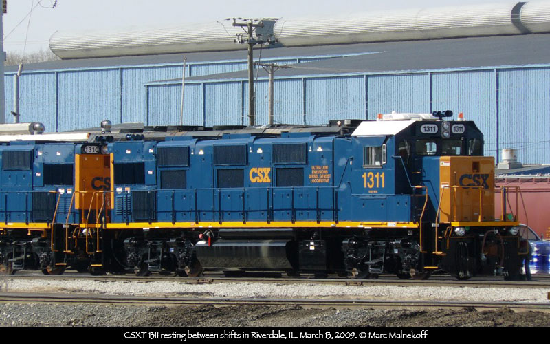 D. 1311 build location from sightings by Ken Lanovich. Ken also provided the builder's plate check. Unit released from Dixmoor in Mid-February 2009 and sent to Chicago.
