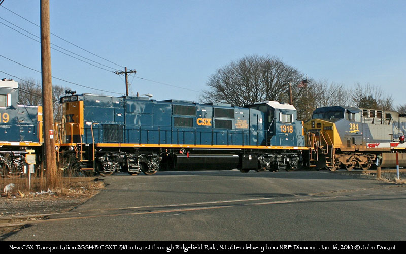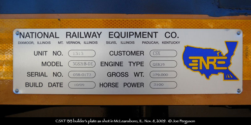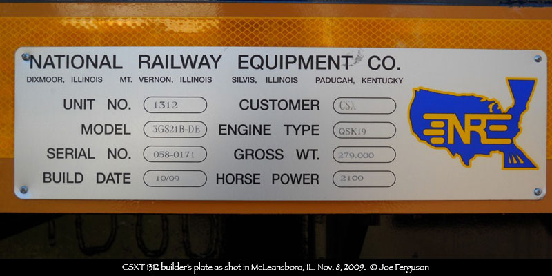 C. CSXT 1318 spotted testing at NRE Dixmoor in Dec. 2009. Build location and builder’s plate data confirmed by Ken Lanovich.