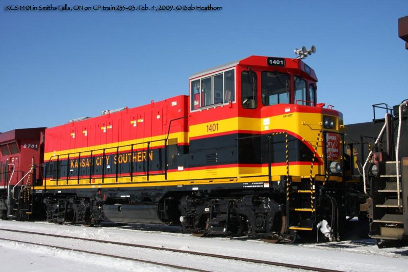 A. KCS 1400 is a genset rebuild of GG20B hybrid KCS 1868. It was spotted in early Jan. 2009 moving to the US on CP train 235-08. Connection to previous unit number was provided by Railpower. Both units (1400 and 1401) are reported to be headed to Port Arthur, TX.