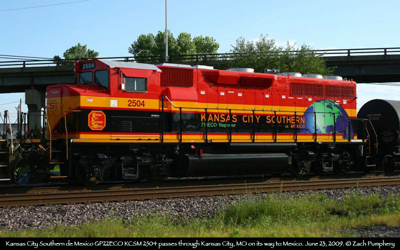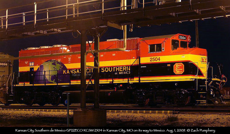 B. Previous unit information for KCSM 2504 is based on documentation, but is not verified. There is a chance that the core for this locomotive could be another GP40-2LW from POOL 2 (see KCSM 2401-2404), and that the listed core could have gone to another of the GP22ECO-M’s.