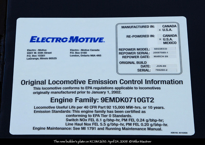 B. KCSM 2650’s builder’s decal info from a photo by Mike Mautner.