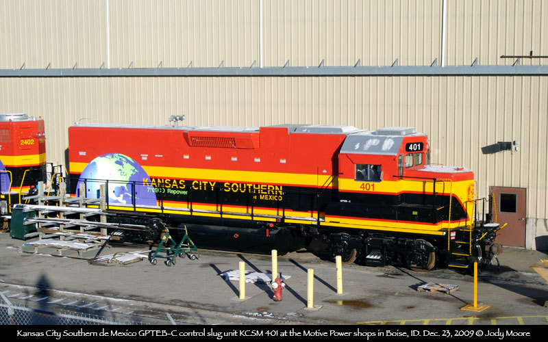 A. KCSM 400 and 401 previous unit information from the Kansas City Southern Historical Society’s NAFTA rosters (http://www.kcshs.org/schedule/subs/images/rosters/locos.htm), and from research provided by Bill Miller.