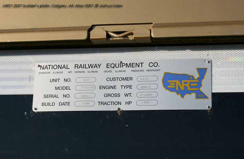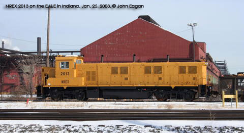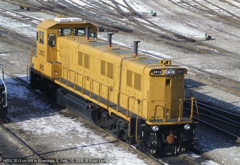 4. NREX 2013 demonstrated on the Elgin, Joliet & Eastern in Gary, IN in late Jan. 2008. It was first noted there on the EJ&E Yahoo group (http://finance.groups.yahoo.com/group/eje). As a demonstrator, it was painted in primer yellow with NREX 2013 stenciled on the side of the cab in black, suggesting it might be a temporary demonstration, as was done with NREX 2011, which demonstrated in primer on CN before becoming BNSF 1240. Interestingly, EJ&E is owned by CN.