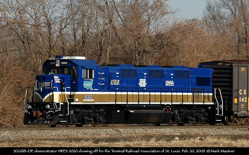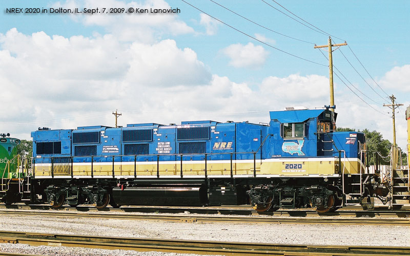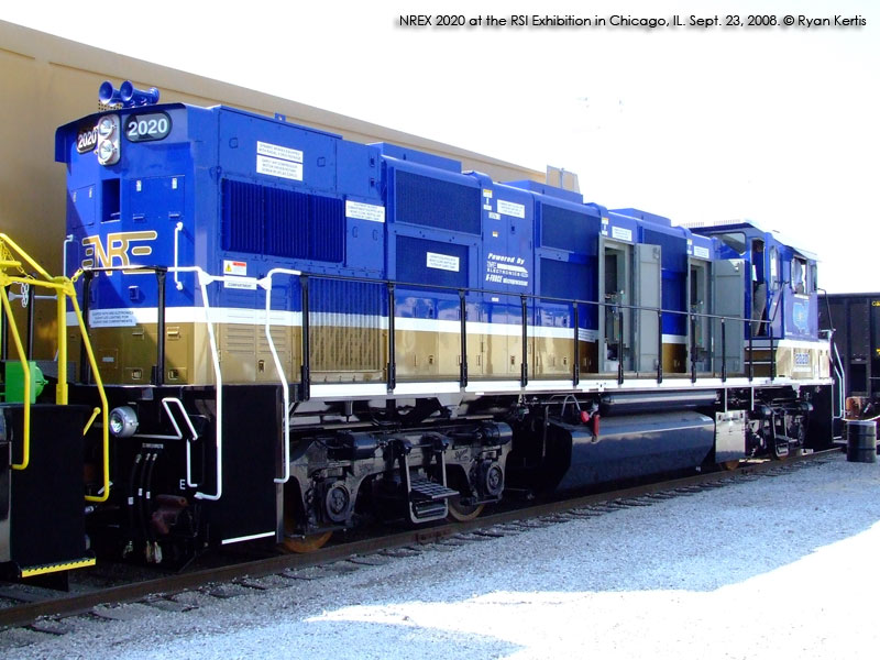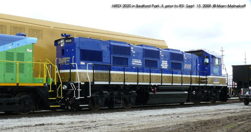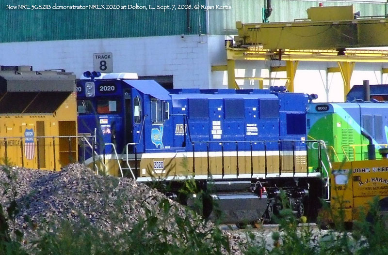 1. NREX 2020 first sighted at UP's Dolton, IL yard in early Sept. 2008. Reported as model 3GS21B-DE, with a number of modifications from previous 3GS21B's including larger air intakes, a taller long hood, and acommodation for the installation of dynamic brakes. From reports by KLanovich, and photographic evidence.