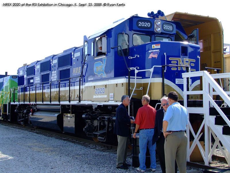 1. NREX 2008 was first spotted in New York in transit in CSX. NREX 2008 completed a nine day demo on the Providence and Worcester railroad in late April or early May 2007. From NRE press release.