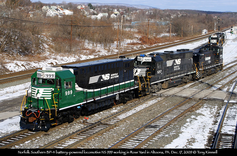 B. According to a note in the NS newsletter, the NS 999 will be tested at NS's Rose Yard in Altoona, PA.
