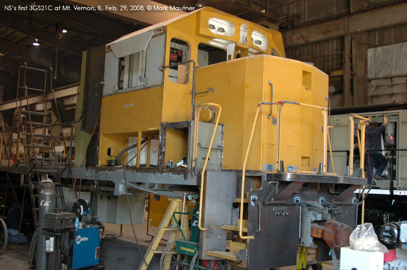 1. Norfolk Southern has ordered a single six-axle genset. From visual confirmation at NRE's Mt. Vernon plant early in 2008. Unlike the other 3GS21C (PHL 80), NS 3850 is equipped with dynamic brakes and is given the model designation 3GS21B-DE.