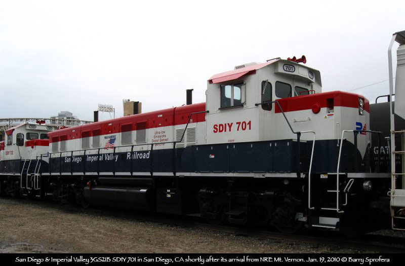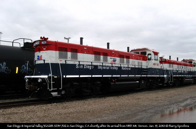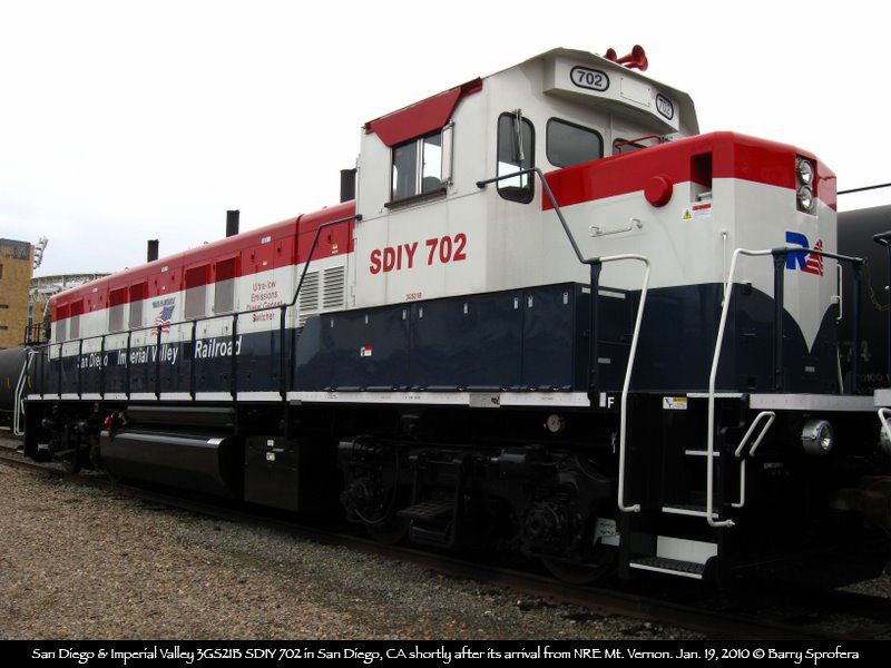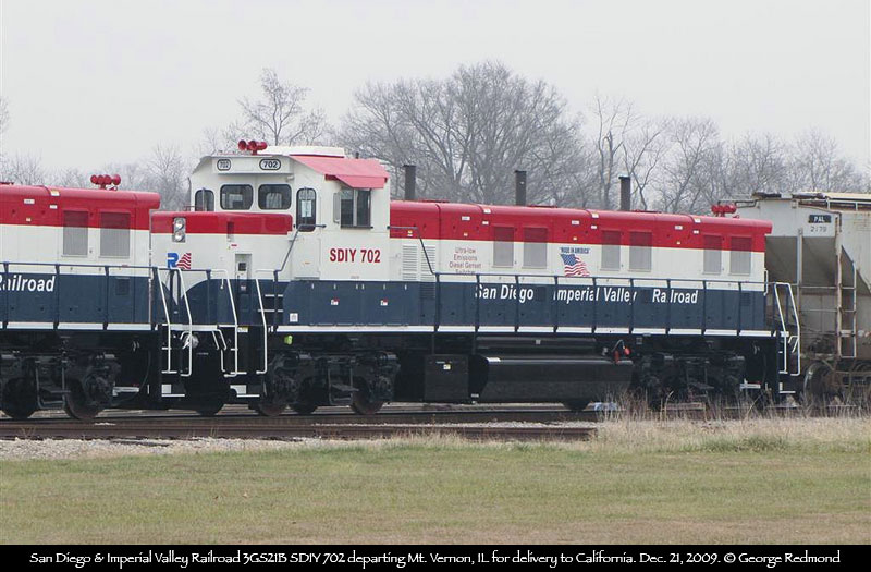 A. Build information on SDIY 702 (058-0178, built Nov. 2009) from a photo of the emissions decal by Rick Morgan and posted on Railroad Picture Archives: http://www.rrpicturearchives.net/showPicture.aspx?id=1888592. Emissions decal incorrectly lists the model as a 3GS21B-DE, and appears to be incorrect on the build date and serial number as well.