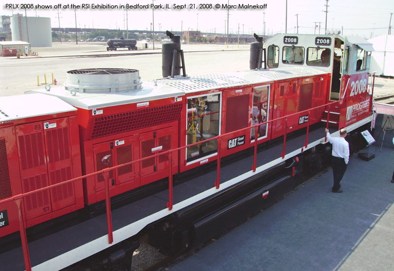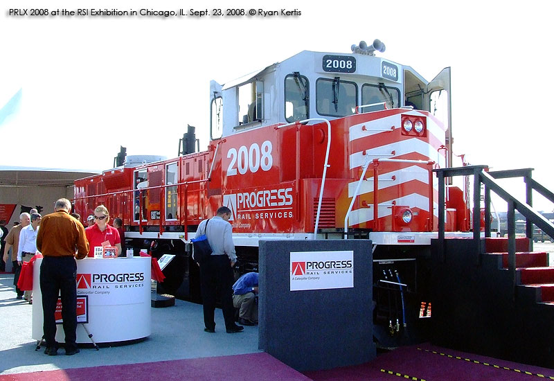 Progress Rail Services' entry into the genset market came by way of a formal announcement with a display at the RSI Rail Technology Exhibition in Chicago on Sept. 21-24, 2008. Not surprisingly, the Caterpillar-owned company's locomotives will use Caterpillar C18 engines for power. They will also be fitted with Cat's ACERT emissions reduction technology. Each genset is rated at 745 horsepower. Progress' three engine genset, model PR22B, will have a total rating of 2,235 hp, while their twin engine model (PR15B?) will be rated at 1,490 hp. Those are the highest horsepower ratings in the industry thus far. The locomotives will be built on refurbished frames, with all new cabs and appliances. Extended range dynamic braking is an available option as well.