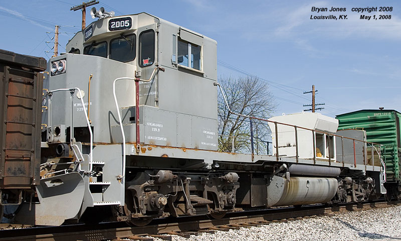 3. Apparently a test bed for Progress Rail's genset locomotive line, this unit was spotted in late August and early September 2007 moving around Georgia sans long hood. From various discussions, it appears that the cab was moved forward slightly to accomodate the genset units, which stand much higher on the frame than the production versions. Unit seen again moving with PRSX 2003 to Mayfield, KY in mid-March 2008.