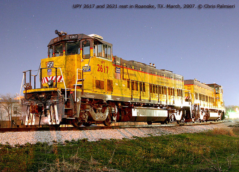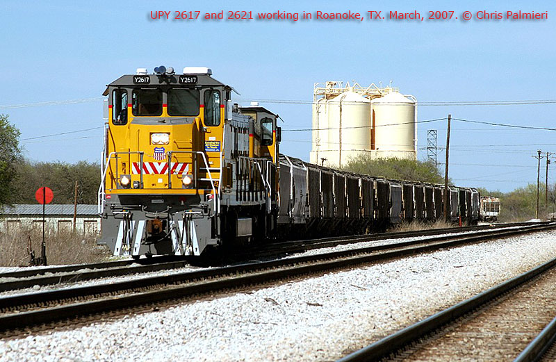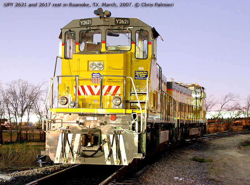 2617 and 2621 awaiting a days' work in Roanoke, TX. March, 2007. Photo by Chris Palmieri.
