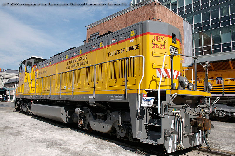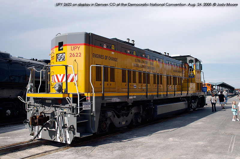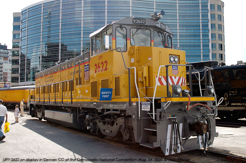 UPY 2622 was brought to Denver, CO on Aug. 12, 2008 for display at the Democratic National Convention on Aug. 25-28. Was displayed along with 4-8-4 steam engine UP 844 and Rio Grande heritage unit UP 1989 across 16th Street from Denver Union Station. |