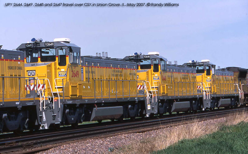 UPY 2644, 2649, 2648 and 2647 in transit on CSX at Union Grove, IL. Photo by Randy Williams. May 2007. Click to enlarge. |