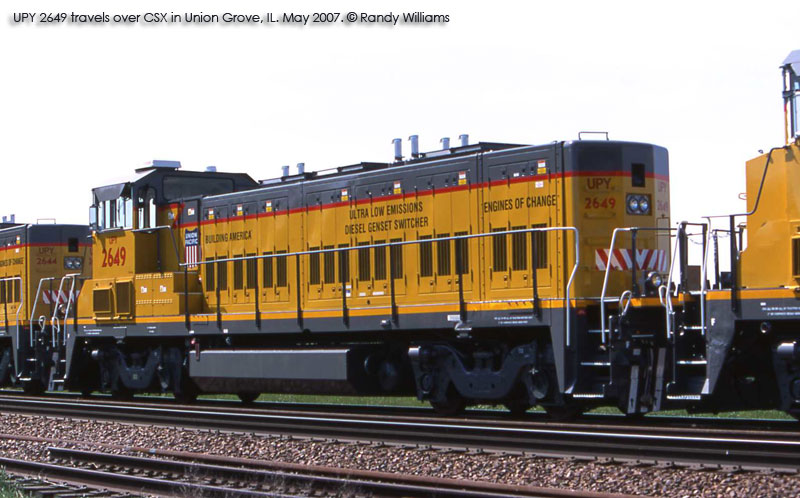 UPY 2644, 2649, 2648 and 2647 in transit on CSX at Union Grove, IL. Photo by Randy Williams. May 2007. Click to enlarge. |